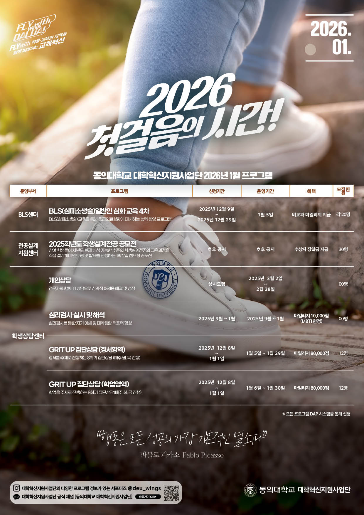 2026학년도 대학혁신지원사업단에서는 운영하는 월간 프로그램(1월) 운영 계획표 안내드립니다.