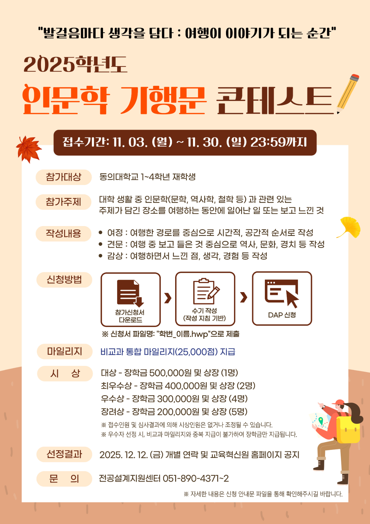 [대학혁신지원사업]2025학년도 인문학 기행문 콘테스트 개최 안내